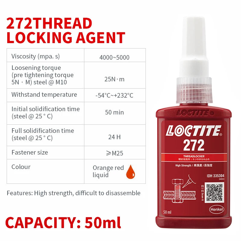 China Manufacturer Direct Sale 50ml Loctit 243 263 272 277 Thread Locking Agent High Temperature Resistance Threadlocker