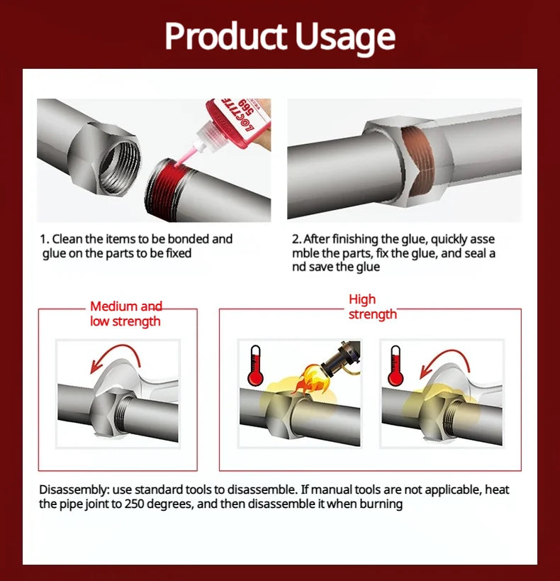 High-temperature Resistant Medium High Low Strength 10ml 50ml 250ml 243 263 272 277 Anaerobic Thread Locking Sealant