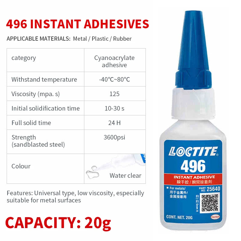 China Manufacturer Direct Sale Loctite 495 High Strength Fast Curing Low Odor Clear Instant Glue Sealant for Rubber and Metal